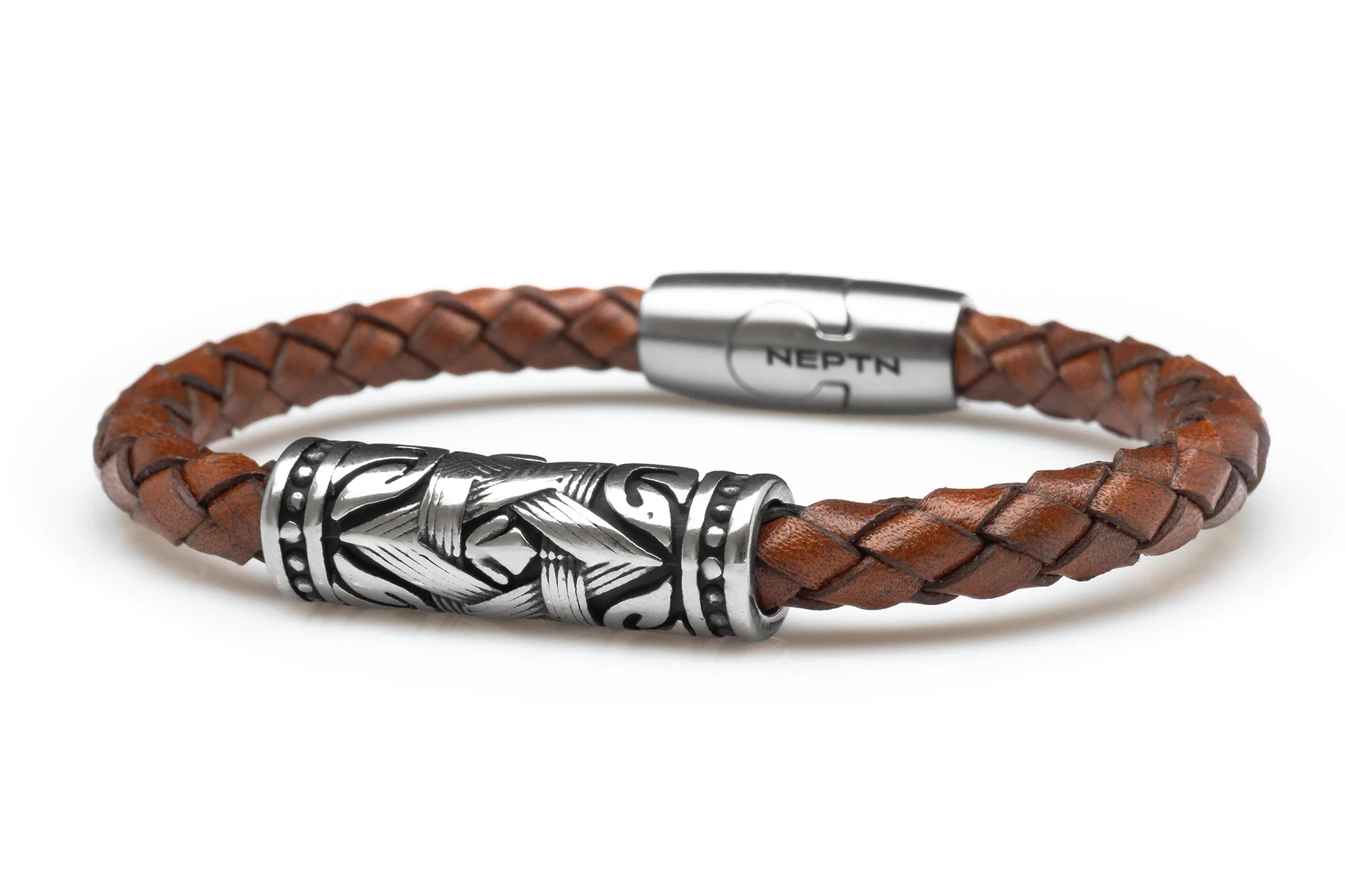 ОПИСАНИЕ МАТЕРИАЛЫ ГРАВИРОВКА БРАСЛЕТ ИЗ ИТАЛЬЯНСКОЙ КОЖИ ПРЕМИУМ КЛАССА и ПОЛИРОВАННОЙ НЕРЖАВЕЮЩЕЙ СТАЛИ. FLAGMAN (Флагман) – лимитированная серия с комбинированной застежкой и декоративным элементом в виде стилизованной Звезды Давида. Грубоватый и суровый как погода. СОЗДАЁТСЯ ВРУЧНУЮ и ИНДИВИДУАЛЬНО НОВЫЙ ДИЗАЙН. Застежка STORM – комбинация механического фиксатора и магнитов. Исключает возможность случайного раскрытия. Можно носить как застежкой, так и декоративным элементом вверх. Диаметр шнура: 6 мм МАТЕРИАЛЫ: Плетеная коровья кожа Матовая комбинированная застёжка (механическая фиксация + магниты) и декоративный элемент из нержавеющей стали Используются дубильные вещества природного происхождения наивысшего качества Без содержания никеля Использование нержавеющей стали высокого качества предотвращает потускнение и окисление, что позволяет изделию служить дольше, чем многие другие подобные украшения. Подтвержденная практикой износостойкость и гипоаллергенность. Стойкость к появлению ржавчины, потемнению и окислению. Требуется минимальный уход. Гравировка: Звезда Давида, Трезубец, NEPTN ЗВЕЗДА ДАВИДА: Символ гармоничного единения двух начал: духовного и материального, мужского и женского. ТРЕЗУБЕЦ: Символ воли и силы